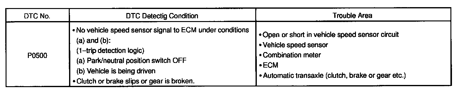 DTC P0500 - Vehicle Speed Sensor Malfunction