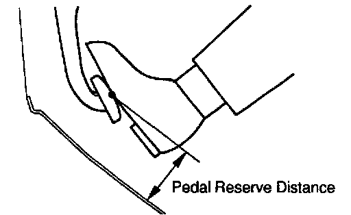 With the engine running, depress the pedal and measure the pedal reserve distance, as shown.
