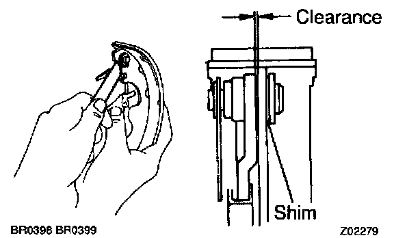 2. CHECK CLEARANCE BETWEEN BRAKE SHOES AND DRUM
