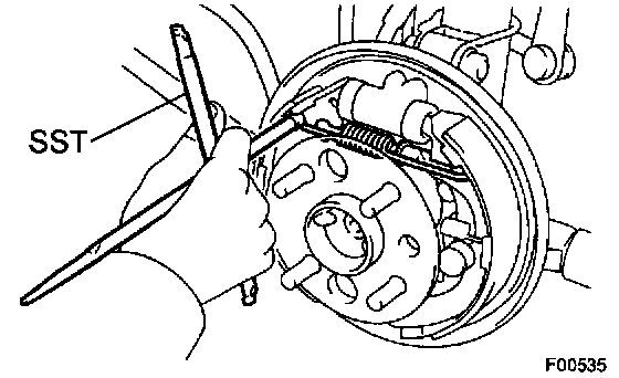 a. Using SST, remove the shoe hold-down spring, cups and pin.