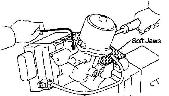 b. Using torx wrench (T25), remove the 4 screws and ABS ECU from the master cylinder with ABS actuator.