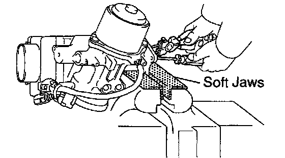 - At the time of reassembly, be careful not to damage the rubber lips on the pistons.