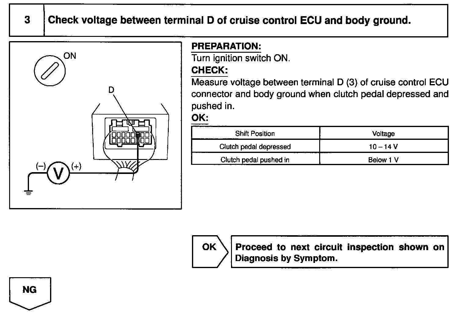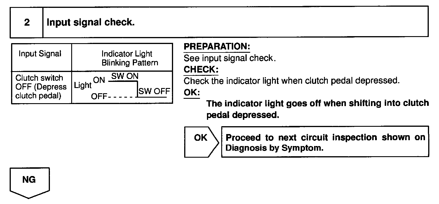 CIRCUIT DESCRIPTIONWhen the clutch pedal is depressed, the clutch switch sends a signal to the cruise control ECU. When the signal is input to the cruise control ECU during cruise control driving, the cruise control ECU cancels cruise control.