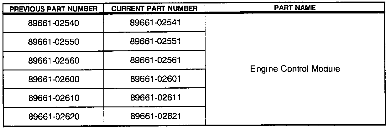 Refer to the Part Number Information Table, to determine the proper revised ECM Part Number.