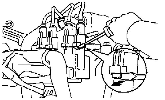 1. Using a screwdriver, lift up the lock claw and disconnect the holder from the ignition coils.