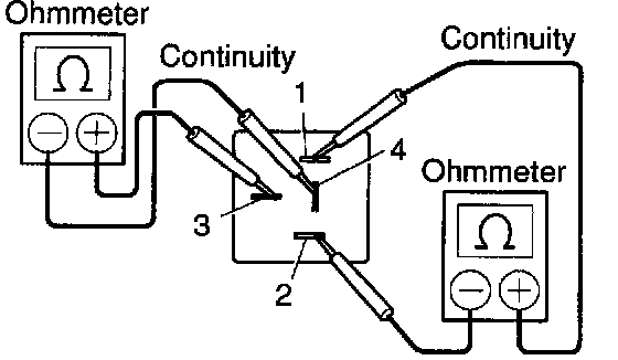 2) Using an ohmmeter, check that there is no continuity between terminals 3 and 4.