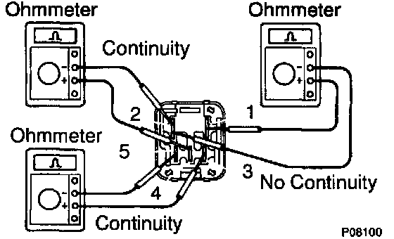 b. Using an ohmmeter, check that there is no continuity between terminals 2 and 4.