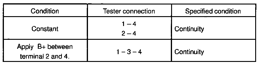 If continuity is not as specified, replace the relay.