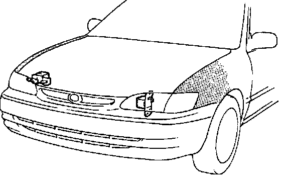 The front airbag sensor is mounted inside each of the side members. The sensor unit is a mechanical type. When the sensor detects deceleration force above a predetermined limit, contact is made in the sensor, sending a signal to the airbag sensor assembly. The sensor cannot be disassembled.