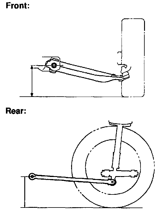 Measure the distance from the ground to the center of the front side strut rod mounting bolt.