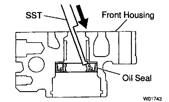 a. Using SST, tap out the oil seal from the front housing.