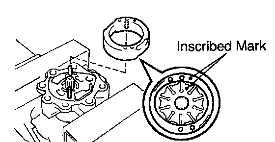 Install the cam ring with the inscribed mark facing outward.