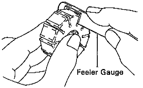 b. Using a feeler gauge, measure the clearance between the vane pump rotor groove and vane plate.