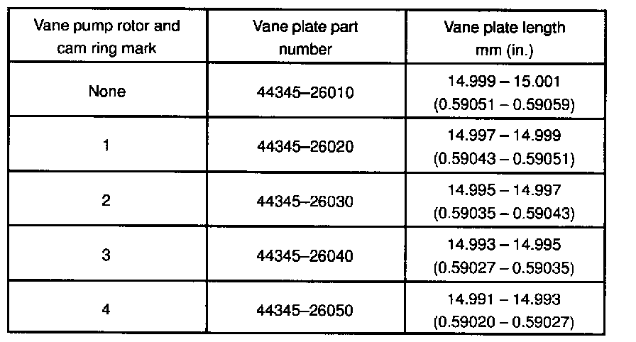 If it is more than the maximum, replace the vane plate and/or vane pump rotor with the one having the same mark stamped on the cam ring.