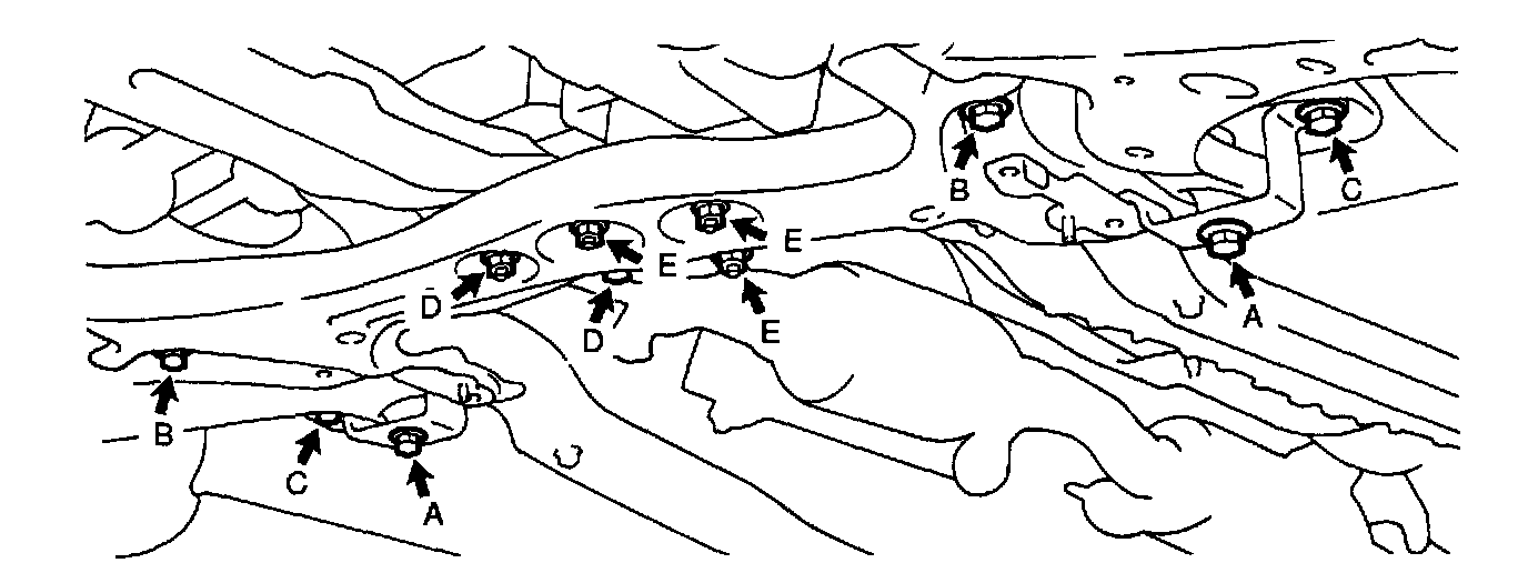 HINT: At the time of installation, after stabilizing the suspension, torque the bolt A, B and C.