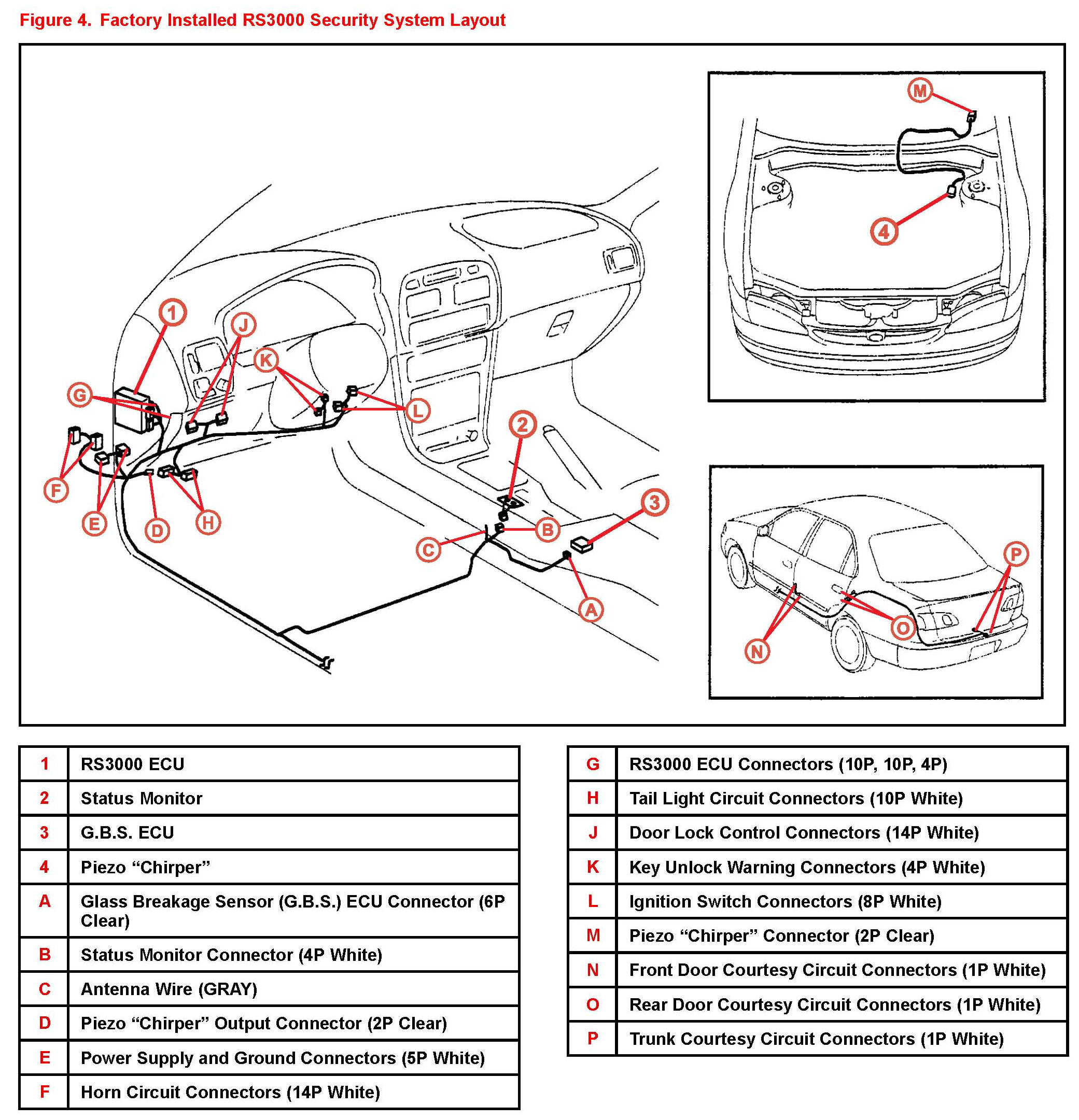 3. Referring to the Security System Layouts in Figures 3 and 4 of this bulletin, determine the location of the R53000 ECU inside the vehicle without disassembling interior panels.