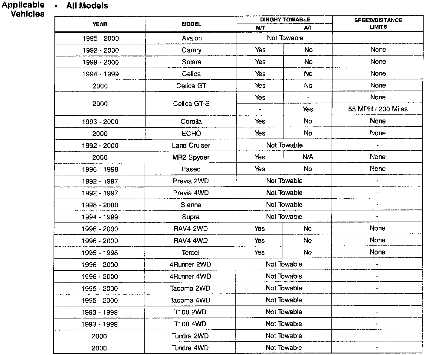 TOYOTA "DINGHY" TOWING GUIDE