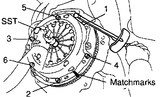 a. Align the matchmark on the clutch cover with the one on the flywheel.