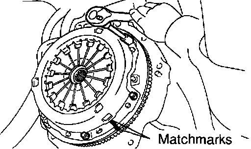 b. Align the matchmarks on the clutch cover and flywheel.