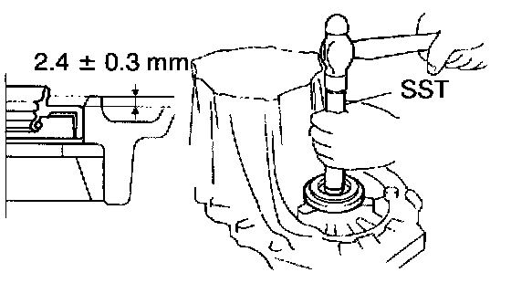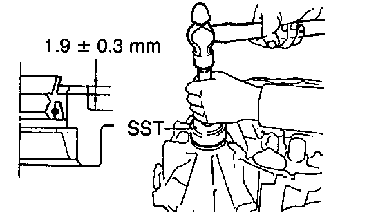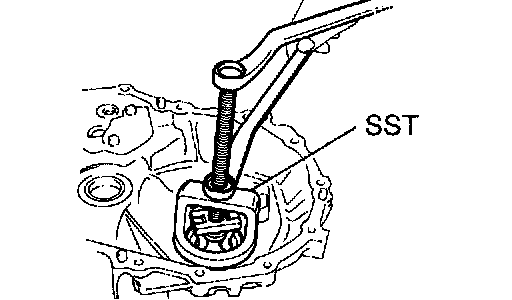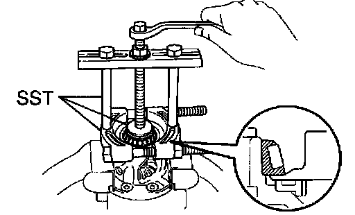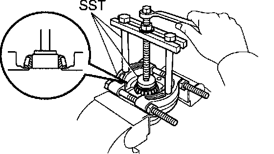 HINT: Set the claw of SST to the bearing inner race at the position where the vehicle speed sensor drive gear is indented.