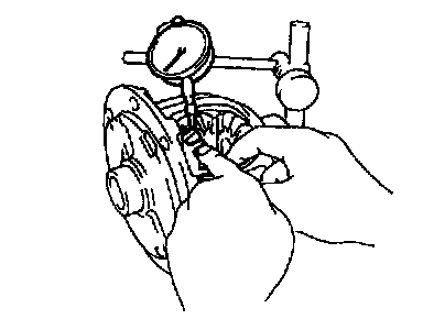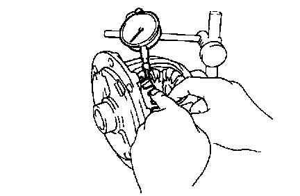 Using a dial indicator, measure the backlash of one side gear while holding one pinion toward the case.
