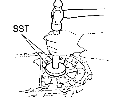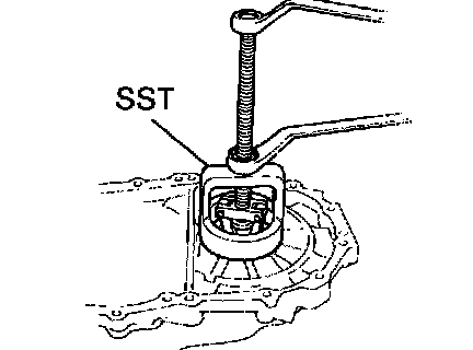 If the preload is not within the specification, remove the transmission case side outer race of the side bearing with SST