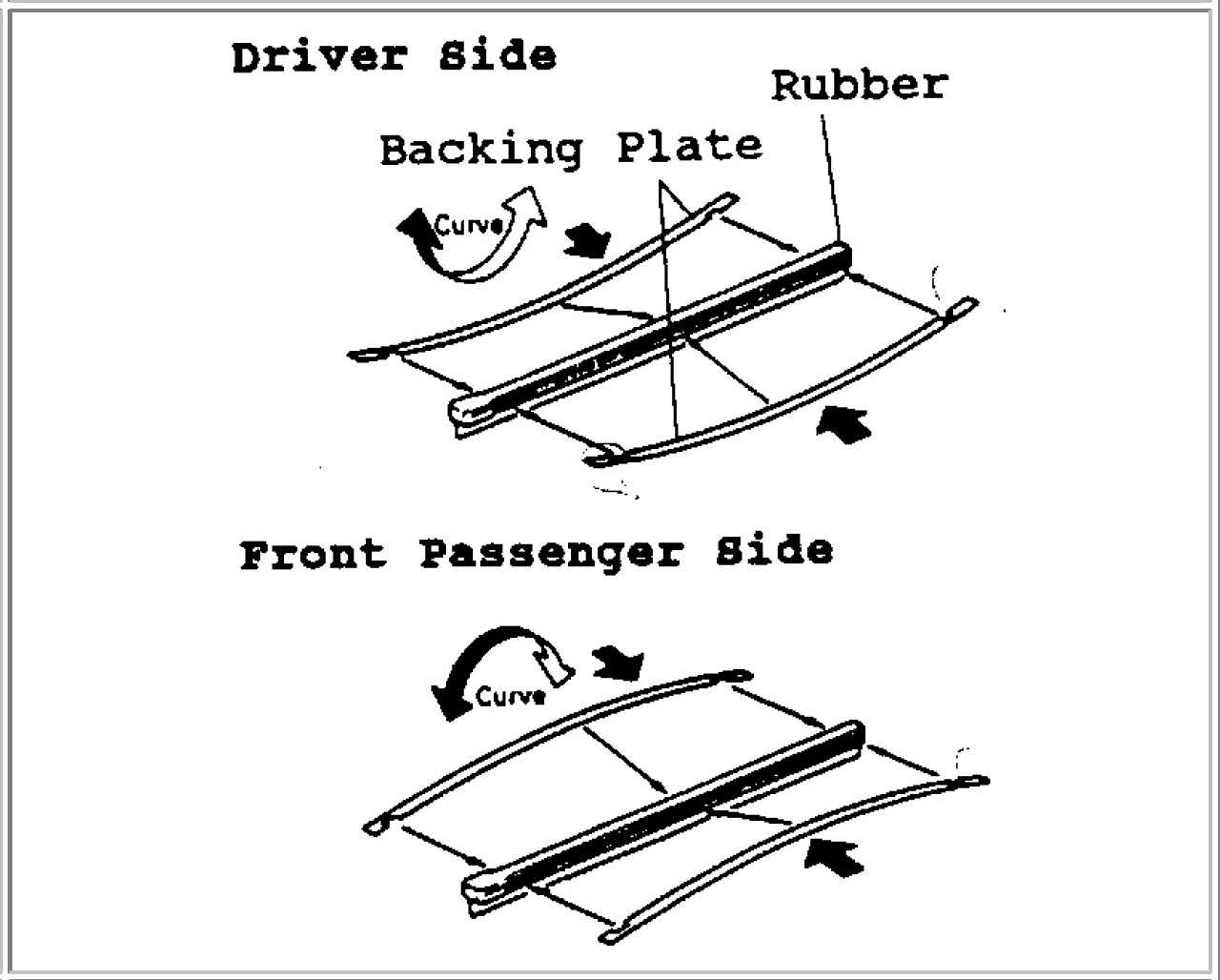 Hint: The backing plates are slightly curved, so check the curvature and set them correctly on the new rubber as shown.