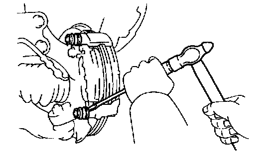 b. Remove the hub nuts and the disc. Reinstall the disc in the position turned 1/4 from its original position on the hub. Install and torque the hub nuts.