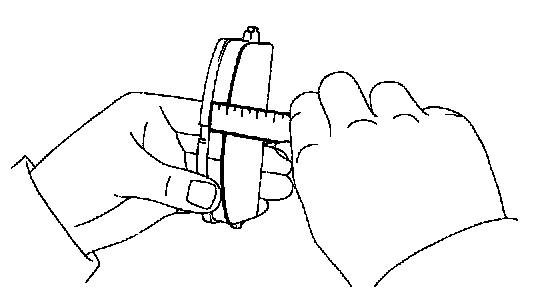 Using a ruler, measure the pad lining thickness.