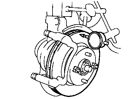 Using a dial indicator, measure the disc runout at a position 10 mm (0.39 inch) away from the outside edge.
