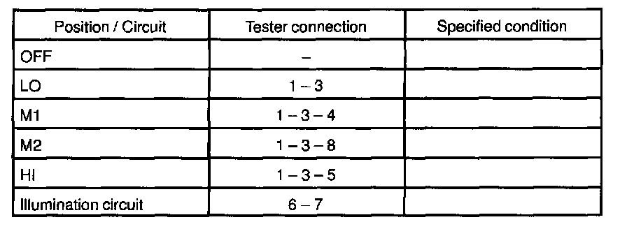 4. INSPECT BLOWER SPEED CONTROL SWITCH CONTINUITY