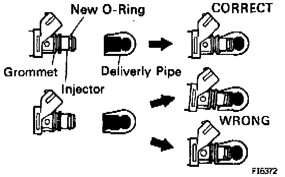 Before installing the injector, must apply spindle oil or gasoline on the place where a delivery pipe or an intake manifold touches an O-ring of the injector.