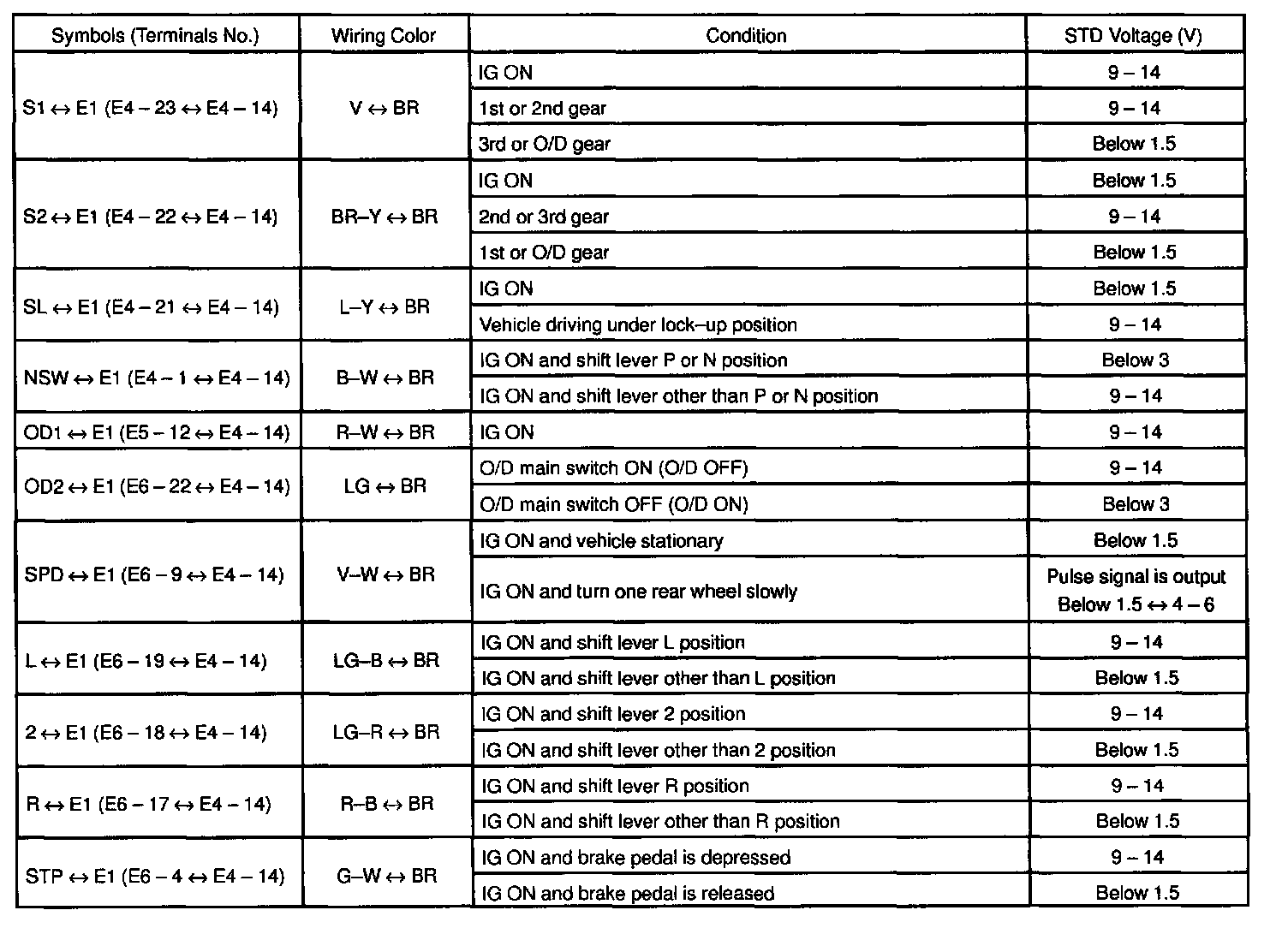 Standard Value of ECU Terminals