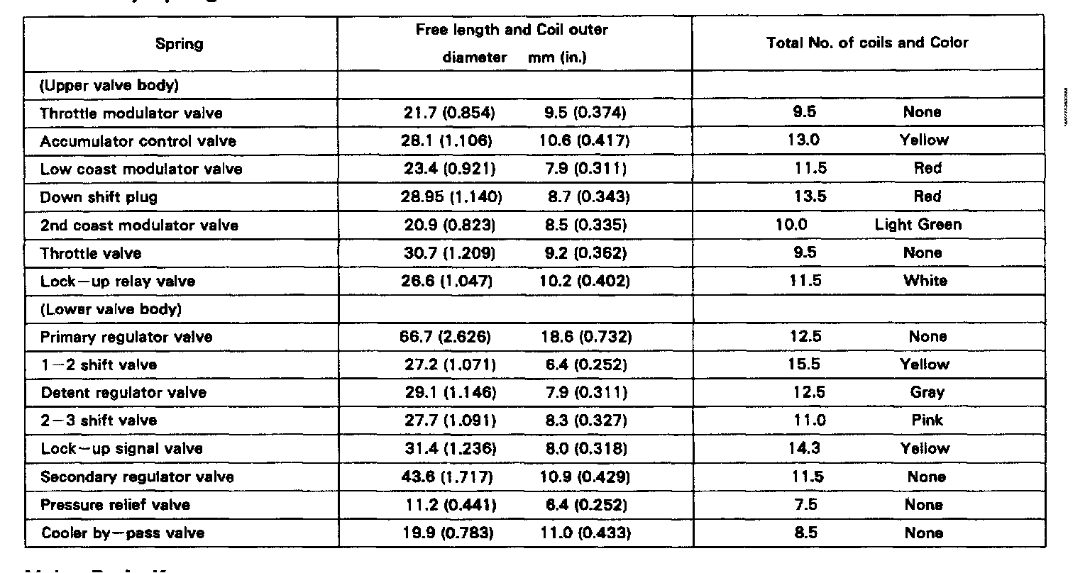 Valve Body Spring Specifications
