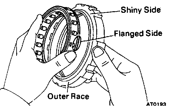 a. Install the one-way clutch into the outer race, facing the flange side of the one-way clutch toward the shiny side of the outer race.