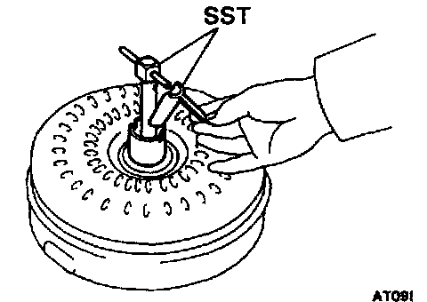 b. Install SST so that it fits in the notch of the converter hub and outer race of the one-way clutch.