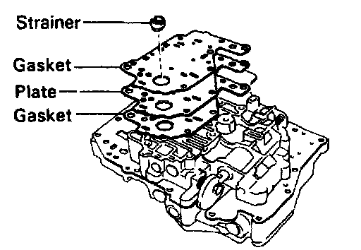 3. REMOVE STRAINER, GASKET, PLATE AND SLEEVE STOPPER FROM UPPER VALVE BODY
