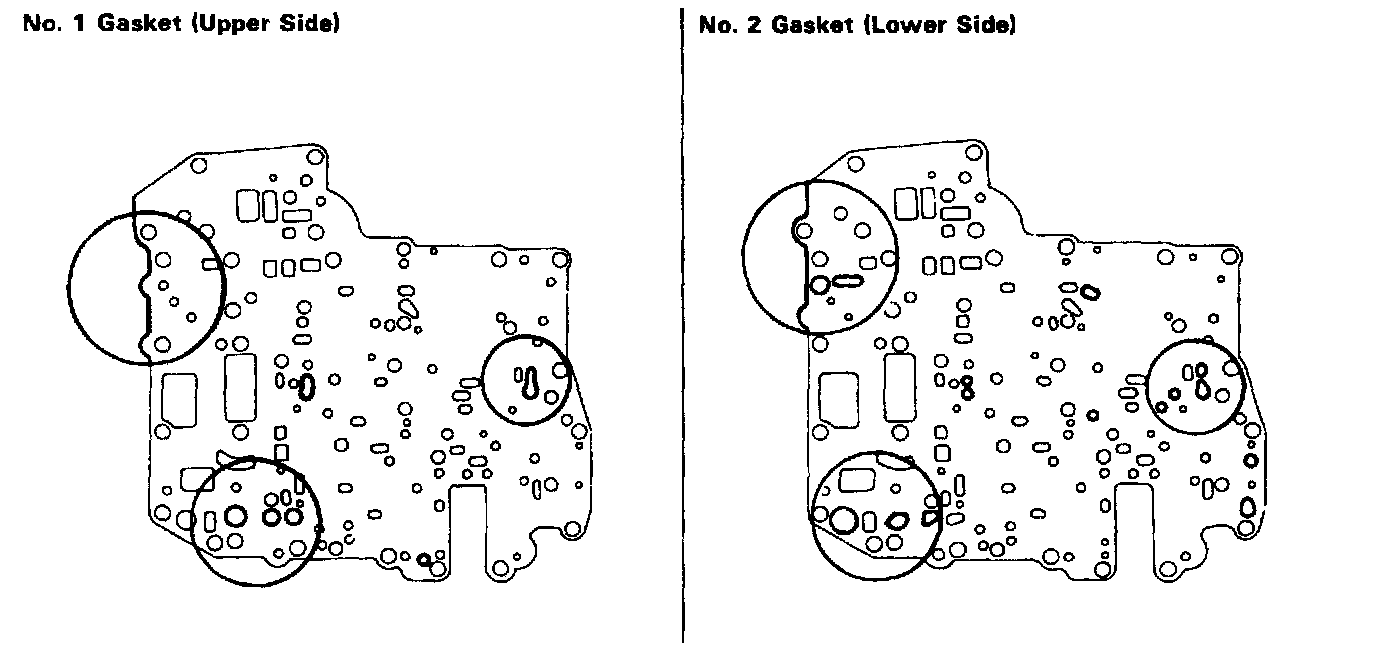 HINT: Since No.1 gasket and No.2 gasket are similar use the illustration below to discriminate between them.