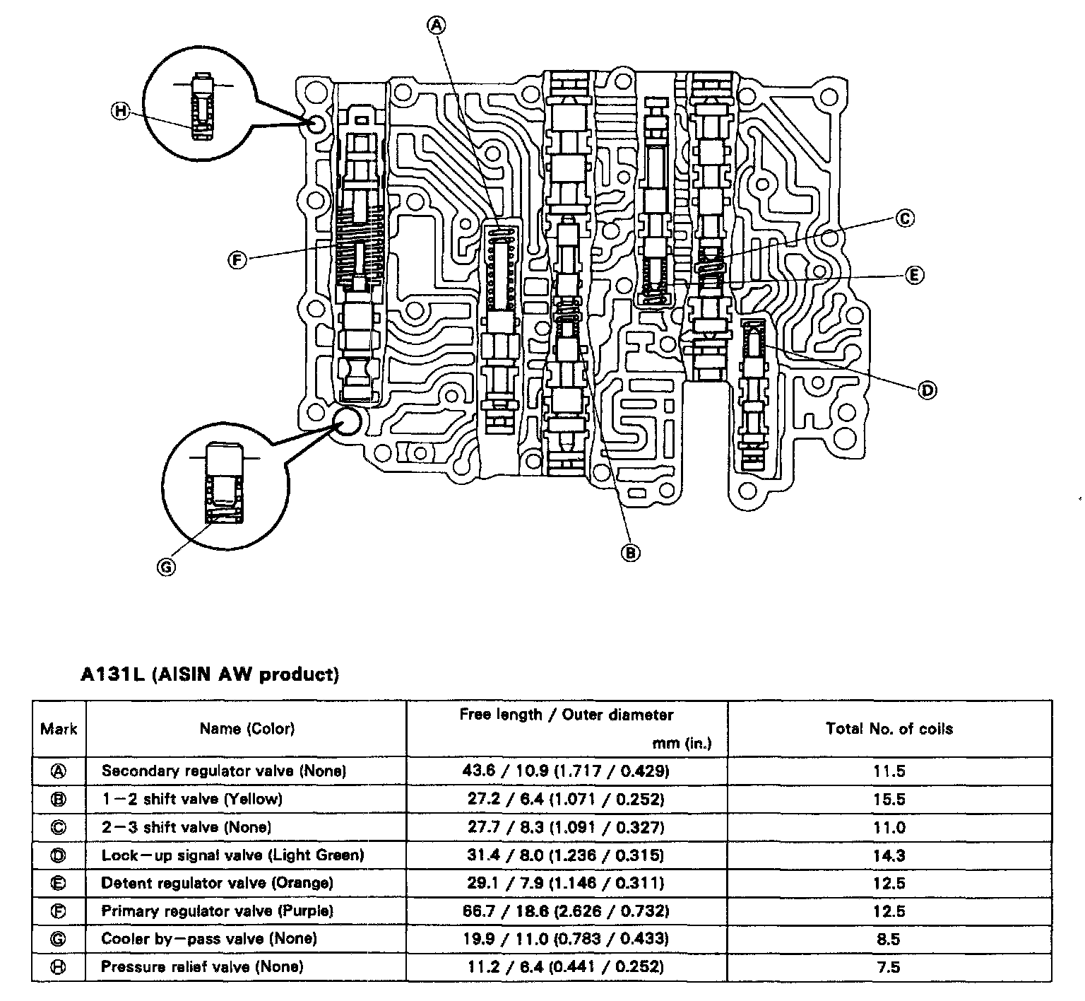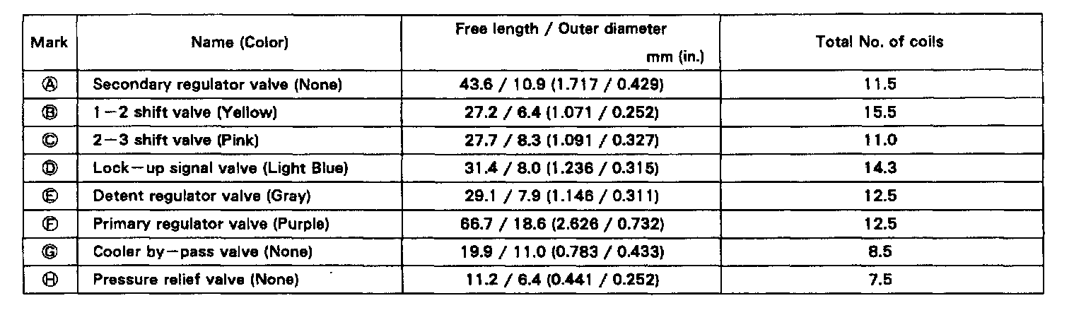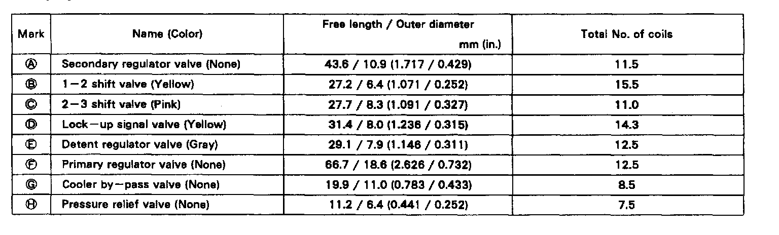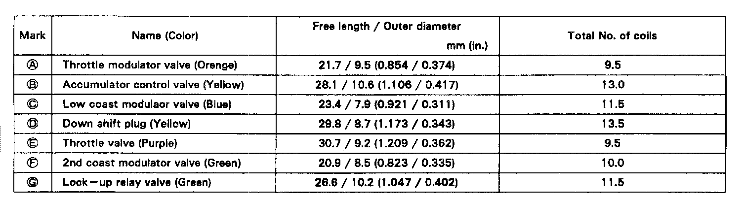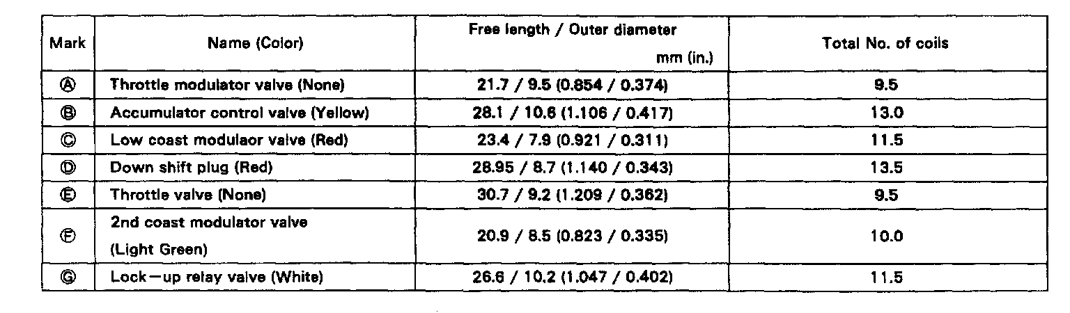 HINT: During re-assembly please refer to the spring specifications below to help you to discriminate between the different springs.