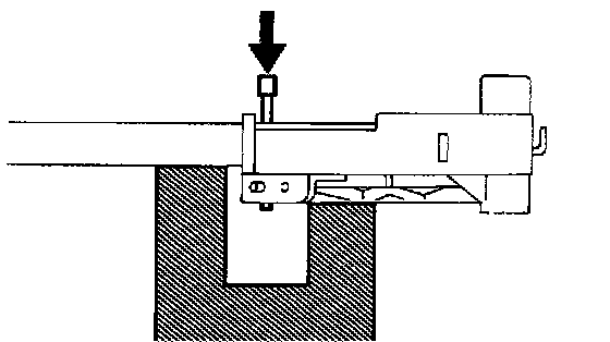 a. Secure the room for the pin to be released by suing the vise and etc. as shown in the illustration, and hit the grooved pin with a hammer and pull the grooved pin out.