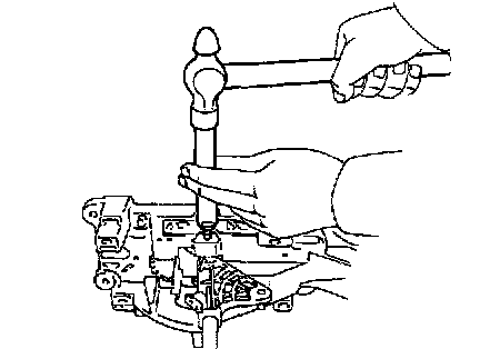 b. Using a brass bar and a hammer, install the control shaft and the shift lever sub-assembly to the shift lever plate.
