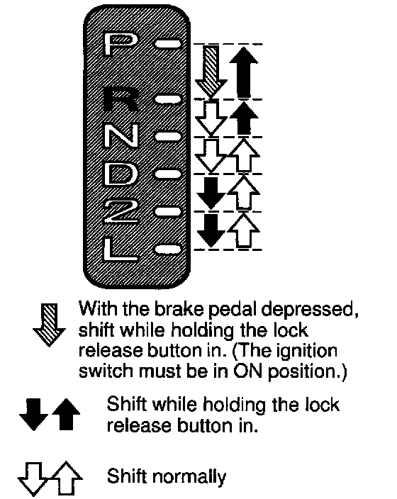 Positions which can be operated only with pressing the shift lever knob button, ignition switch ON and brake pedal depressed