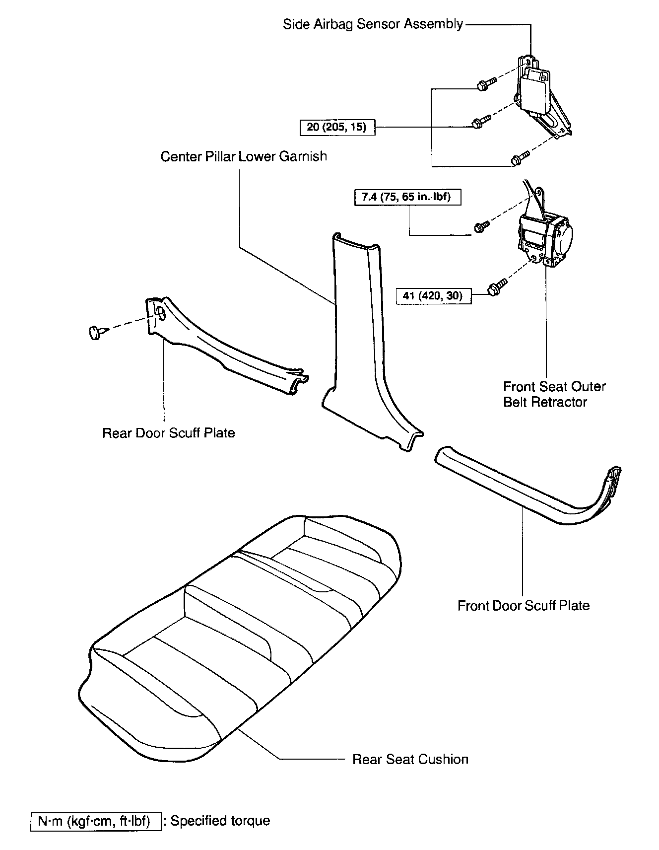Lower bolt: 41 Nm (420 kg.cm, 30 ft.lb)
