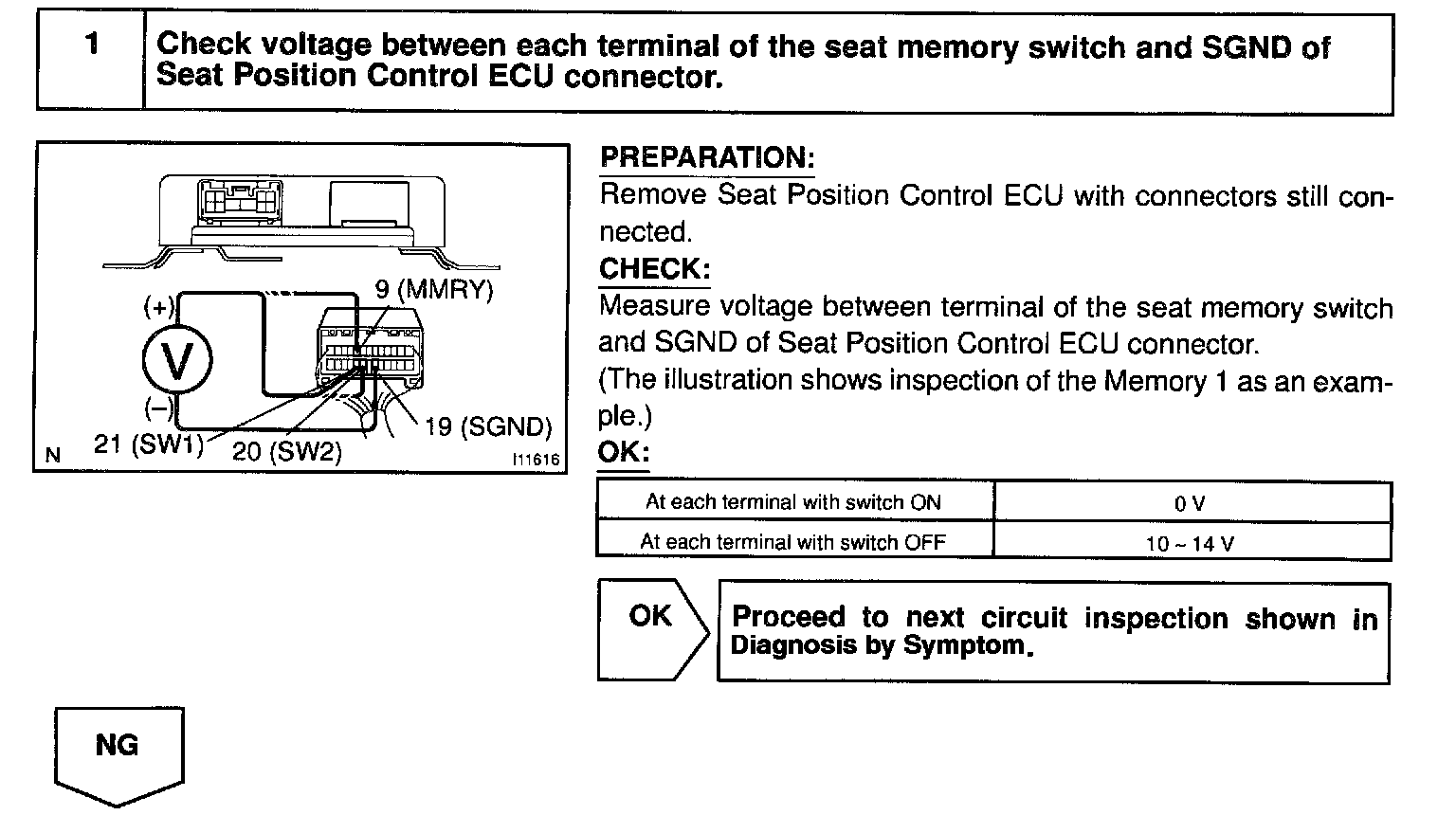 send memory and return signals to the seat position control ECU.