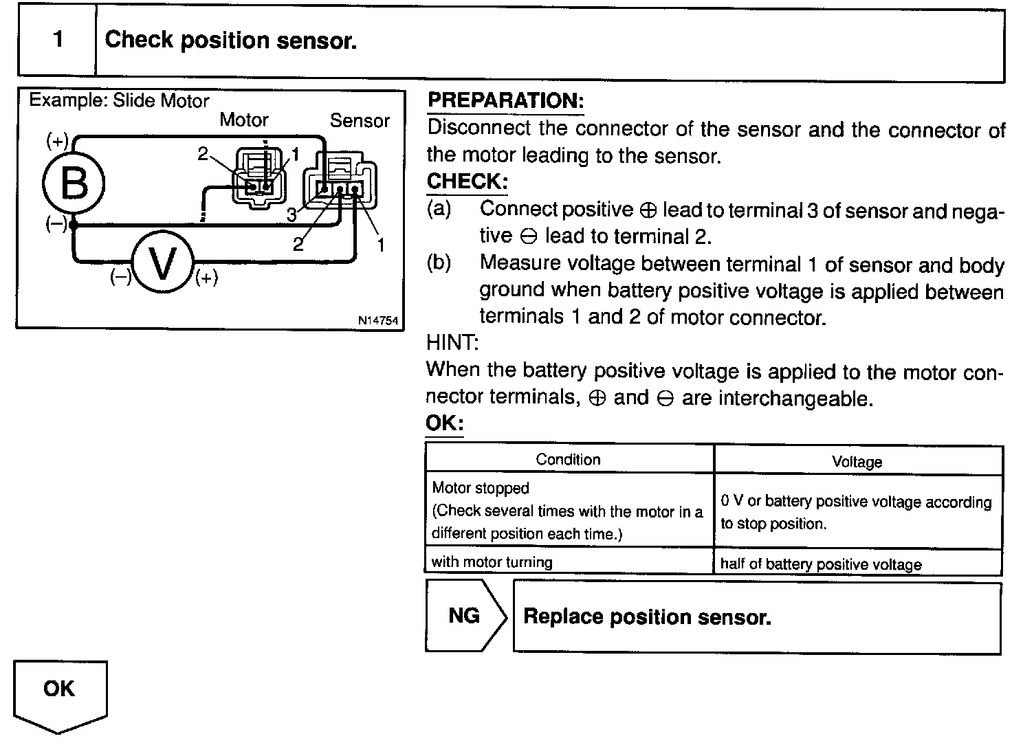 The position sensor senses movement of the seat and send pulse signals to the ECU. The position sensor sends pulse to the ECU in proportion to the amount of seat movement, as shown in the diagram on the left.