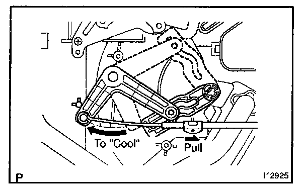 NOTE: When the air mix damper control cable is disconnected, should not bend the cable.