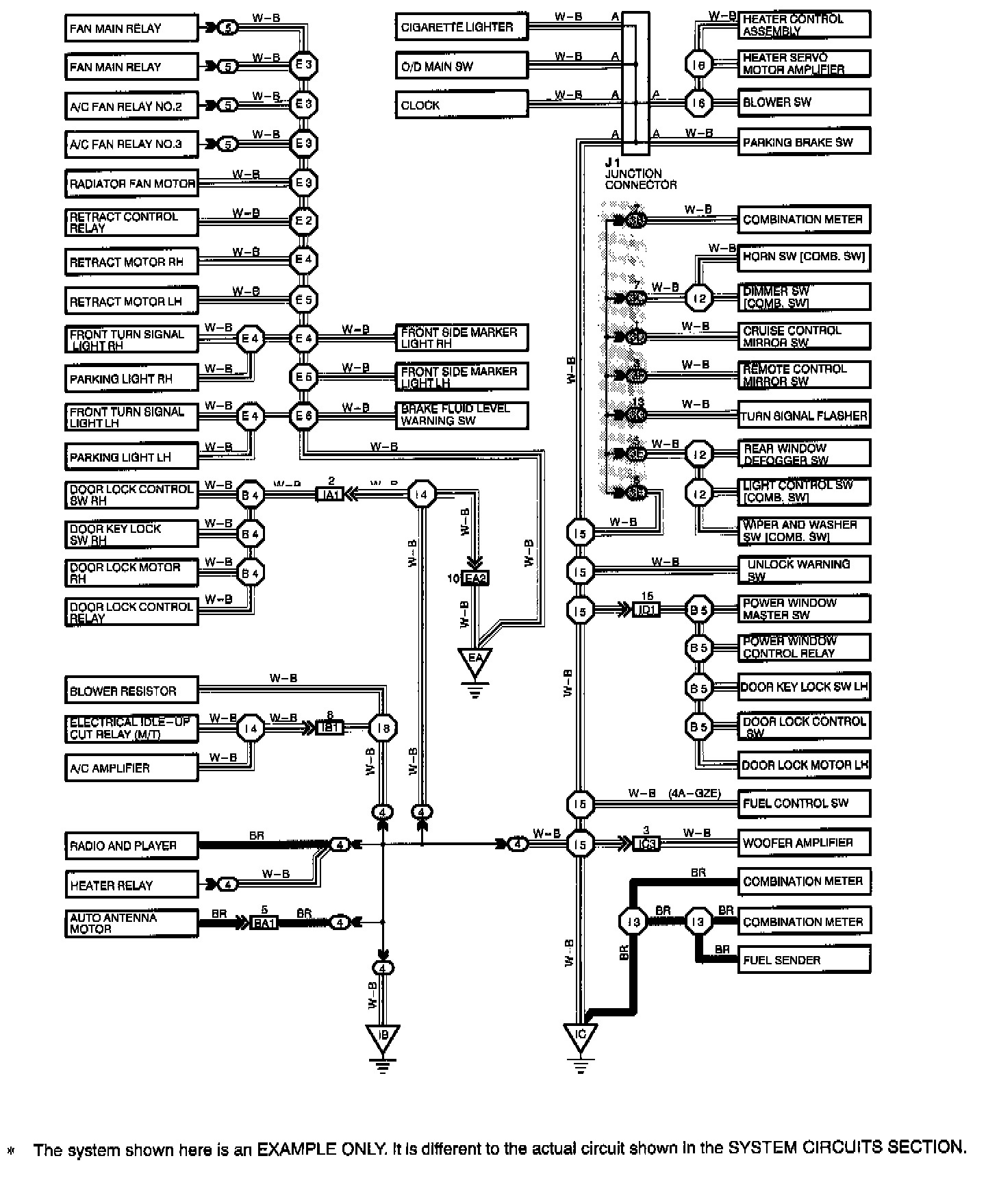 The ground points circuit diagram shows the connections from all major parts to the respective ground points.