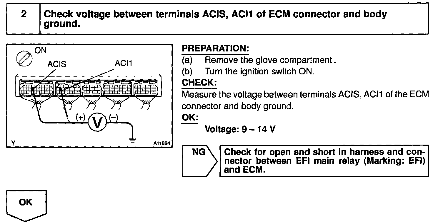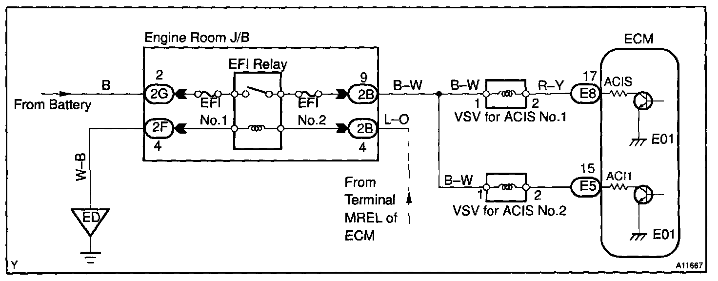 This circuit opens and closes the IACV (Intake Air Control Valve) in response to the engine load in order to increase the intake efficiency (ACIS: Acoustic Control Induction System).