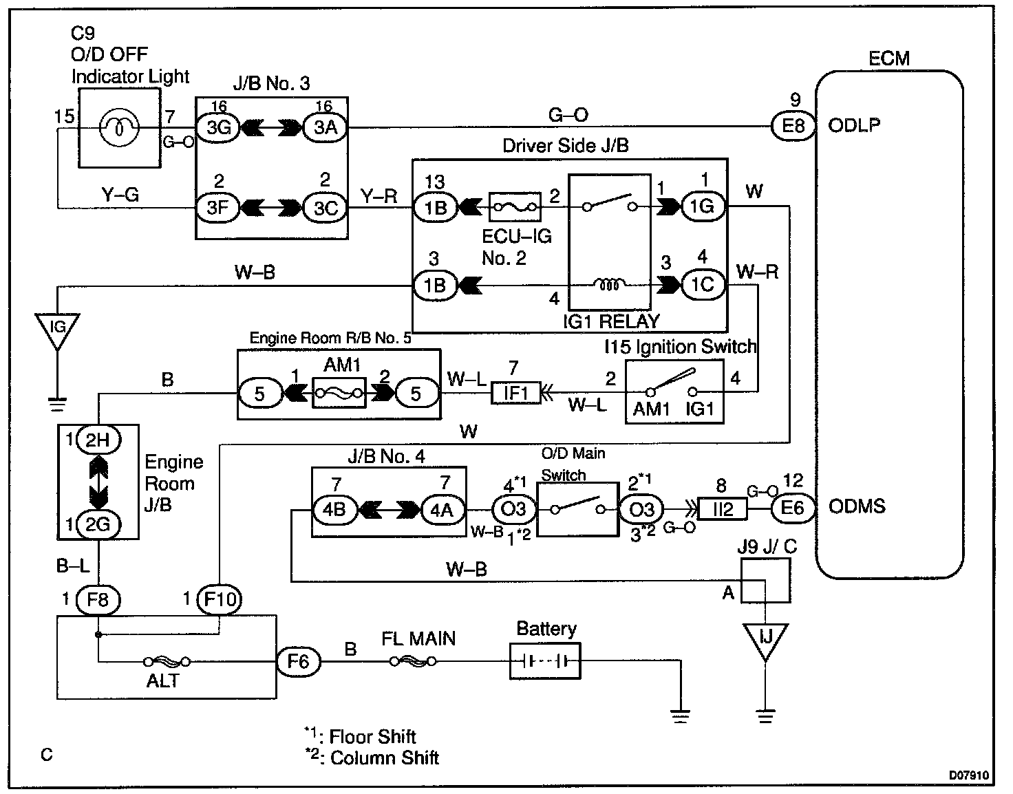 O/D Main Switch & O/D OFF Indicator Light Circuit