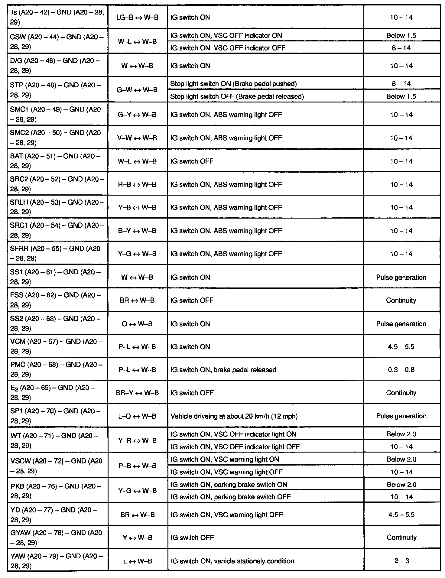 Pinout Values and Diagnostic Parameters